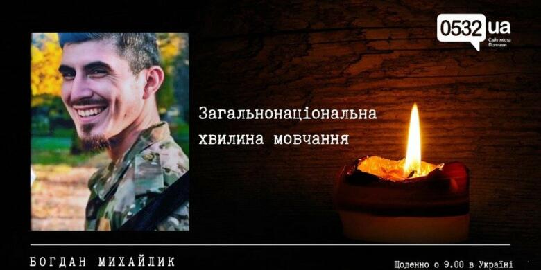 Команда журналістів 0532.ua долучається до загальнонаціональної хвилини мовчання, аби вшанувати українських воїнів, які стали на захист нашої держави та віддали свої життя за свободу і майбутнє України. Сьогодні ми згадуємо Богдана Михайлика - захисника з Кременчуцького району, який мужньо боровся за Батьківщину та до останнього боровся за життя після отриманих бойових поранень. Богдан Михайлик народився 21 грудня 1993 року. Проживав у селі Піщане Кременчу...