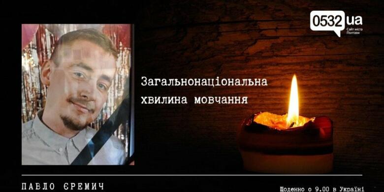 Команда журналістів 0532.ua долучається до загальнонаціональної хвилини мовчання, аби вшанувати пам’ять тих, хто віддав життя за свободу та незалежність України. Сьогодні ми згадуємо воїна з Полтави Павла Єремича, який став на захист держави та передчасно пішов із життя. Єремич Павло Ігорович народився 9 травня 1987 року у Полтаві в сім’ї військового. Дитинство провів у Криму. Після завершення навчання у місцевій школі здобув вищу освіту у Полтавському інс...